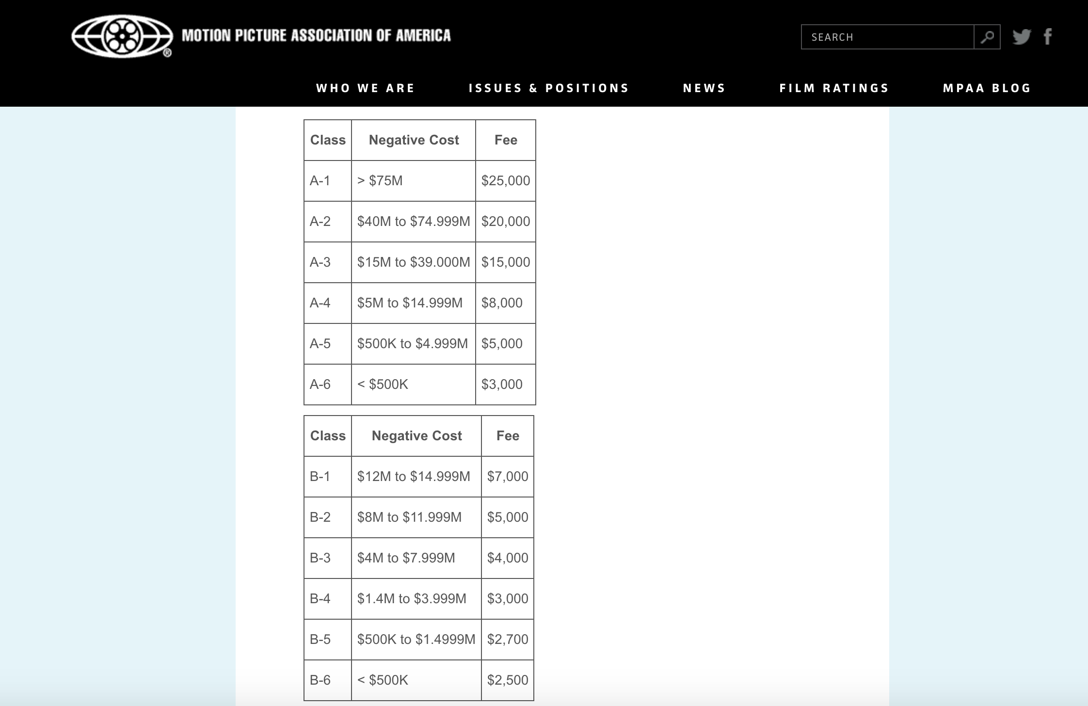Have you ever wondered how much it cost to get your film rated by MPAA? Well, here is an example of the pricing structure. We are working through this process right now. I think we need to raise some more money!! :)